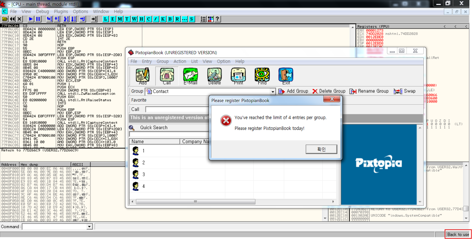 아래의 "UNREGISTERED VERSION"을 다른 문자열로 수정하자.